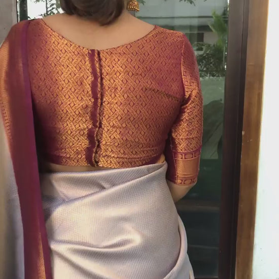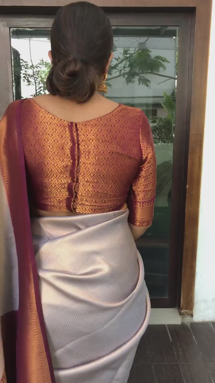 Beige Soft Banarasi Silk Saree With Contrasting Brown Blouse Piece