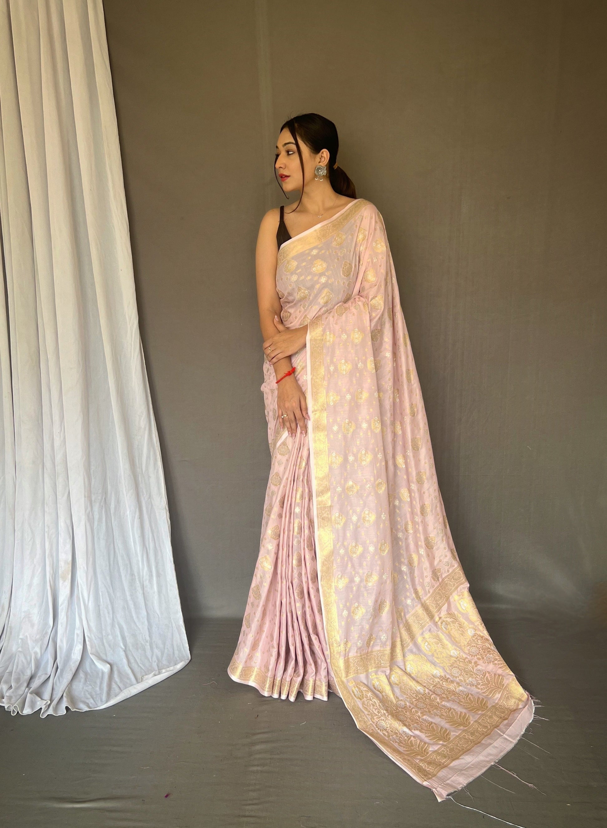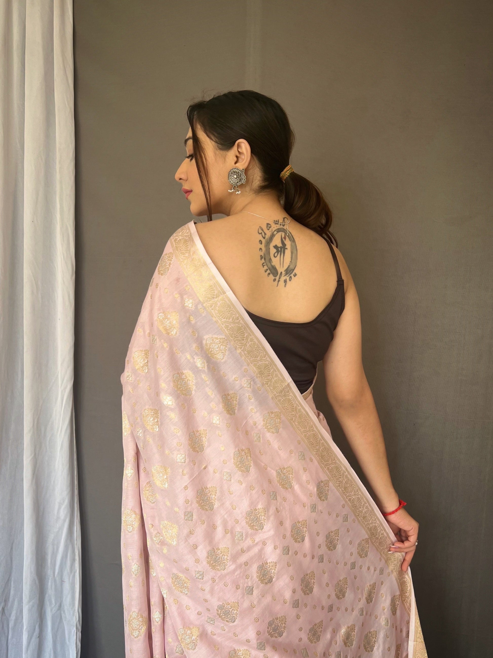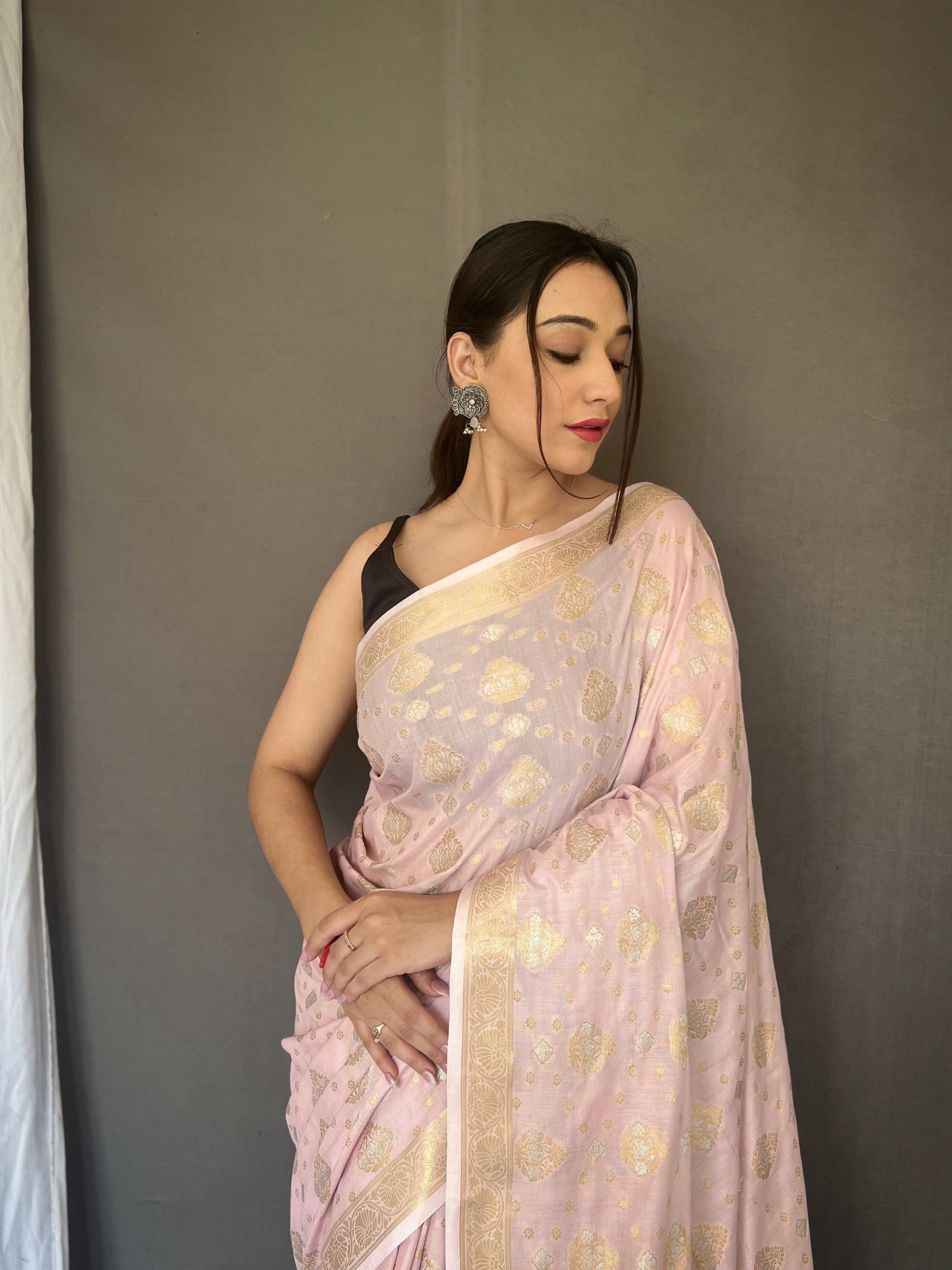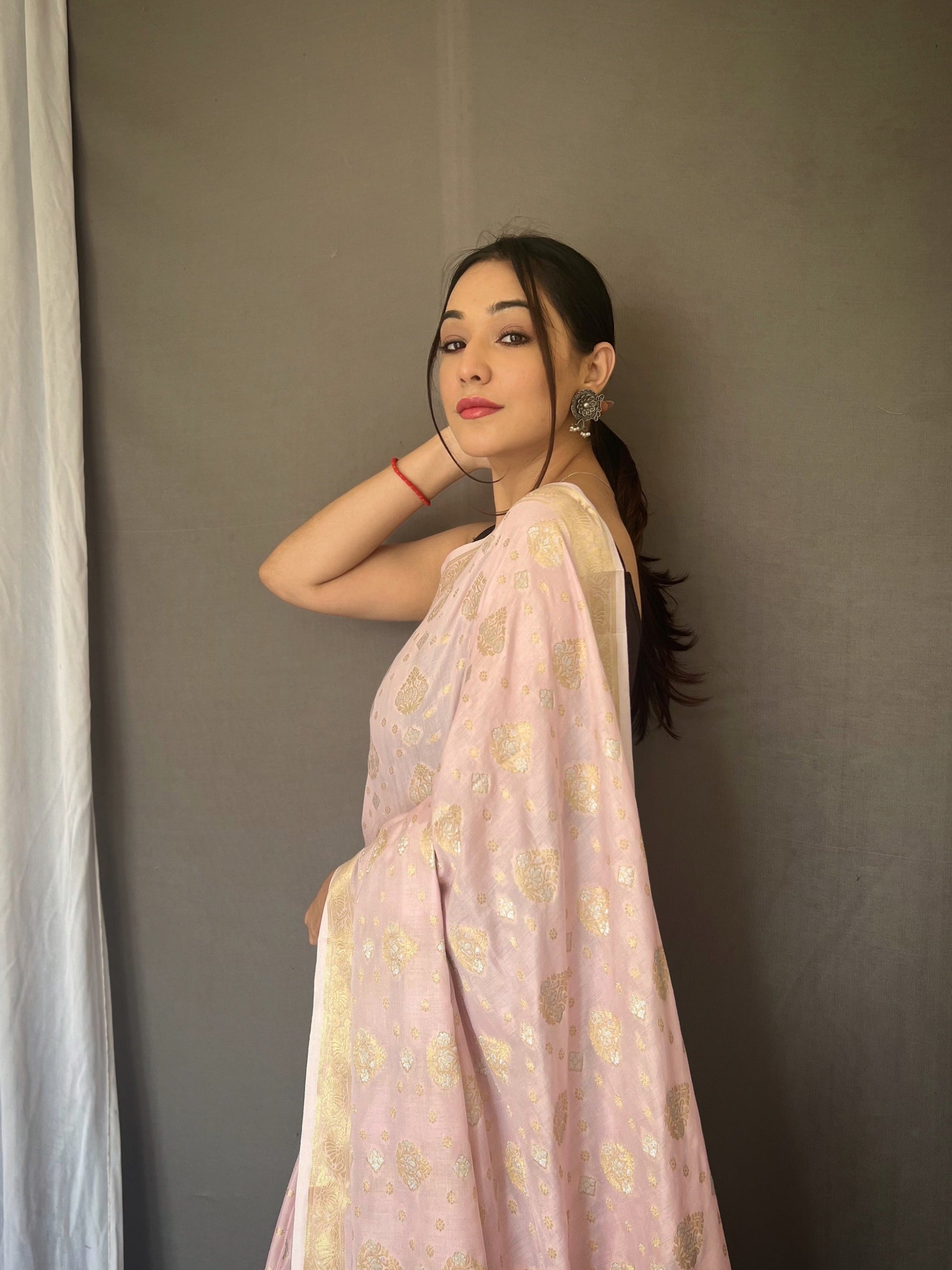 Baby Pink Hasti Cotton Muslin Woven Saree