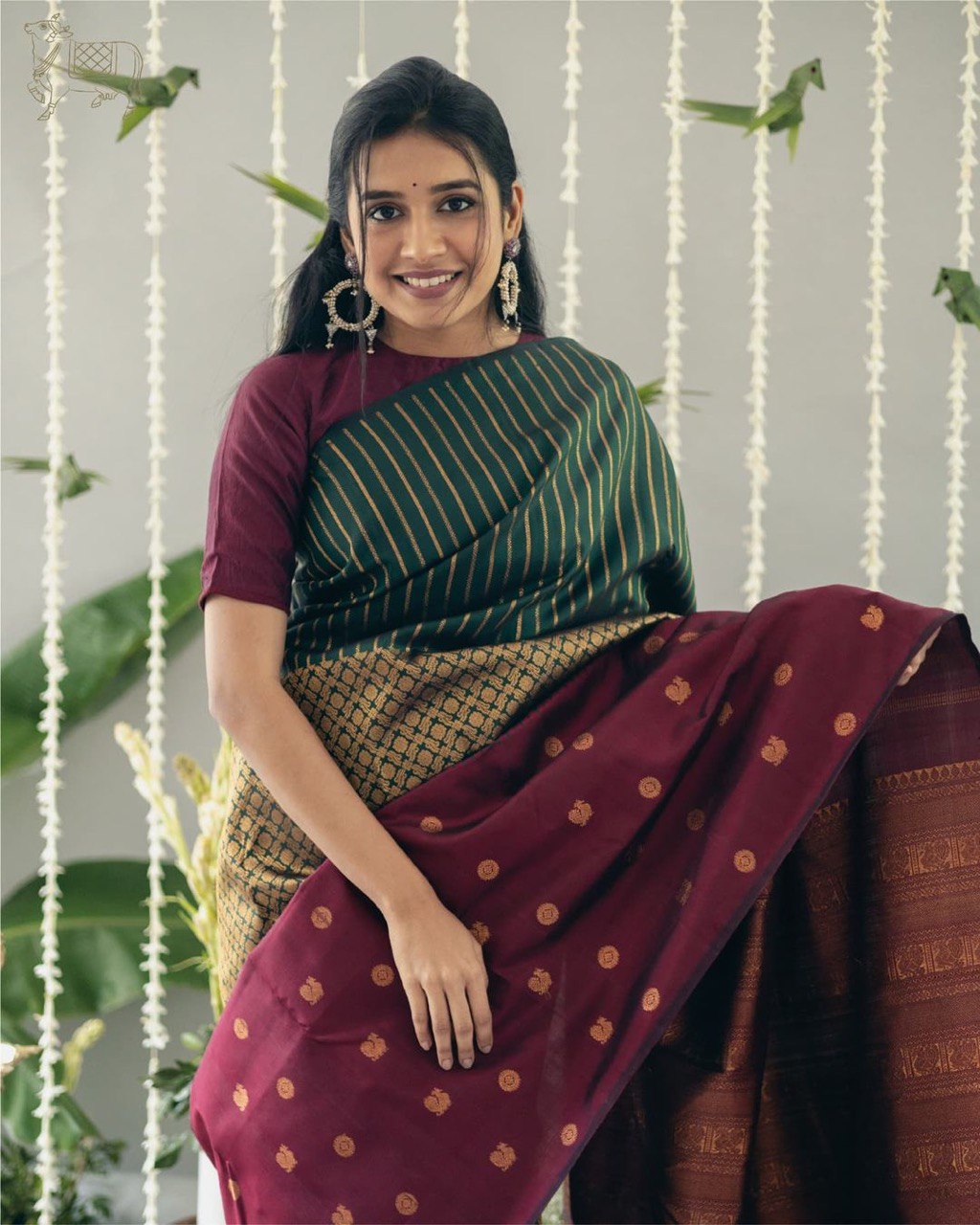 Banu Green And Maroon Banarasi Silk Saree WIth Fabulouse Blouse Piece