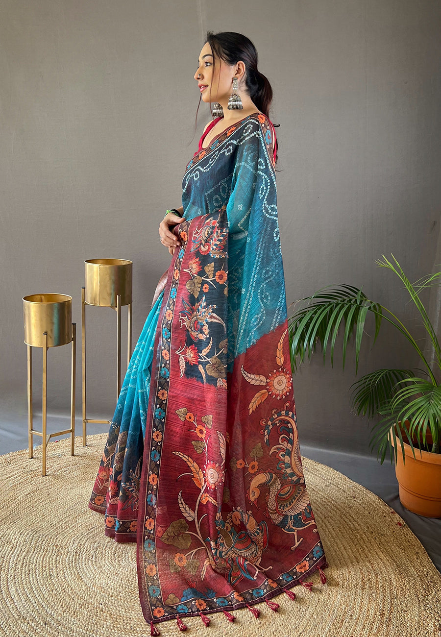 Bhargavi Blue Cotton Kalamkari Printed Saree