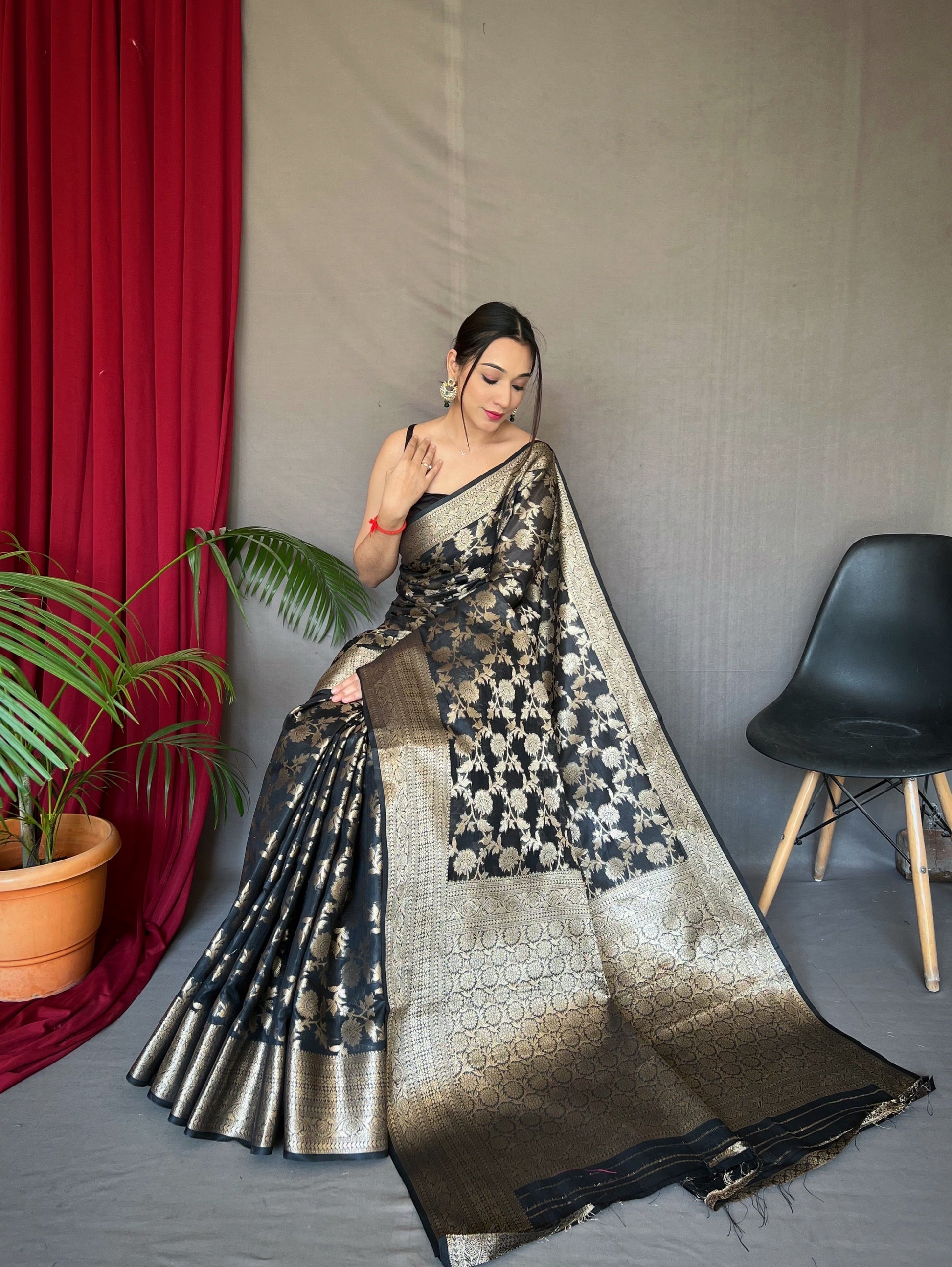 Black Jhalak Cotton Linen Jaal Woven Saree