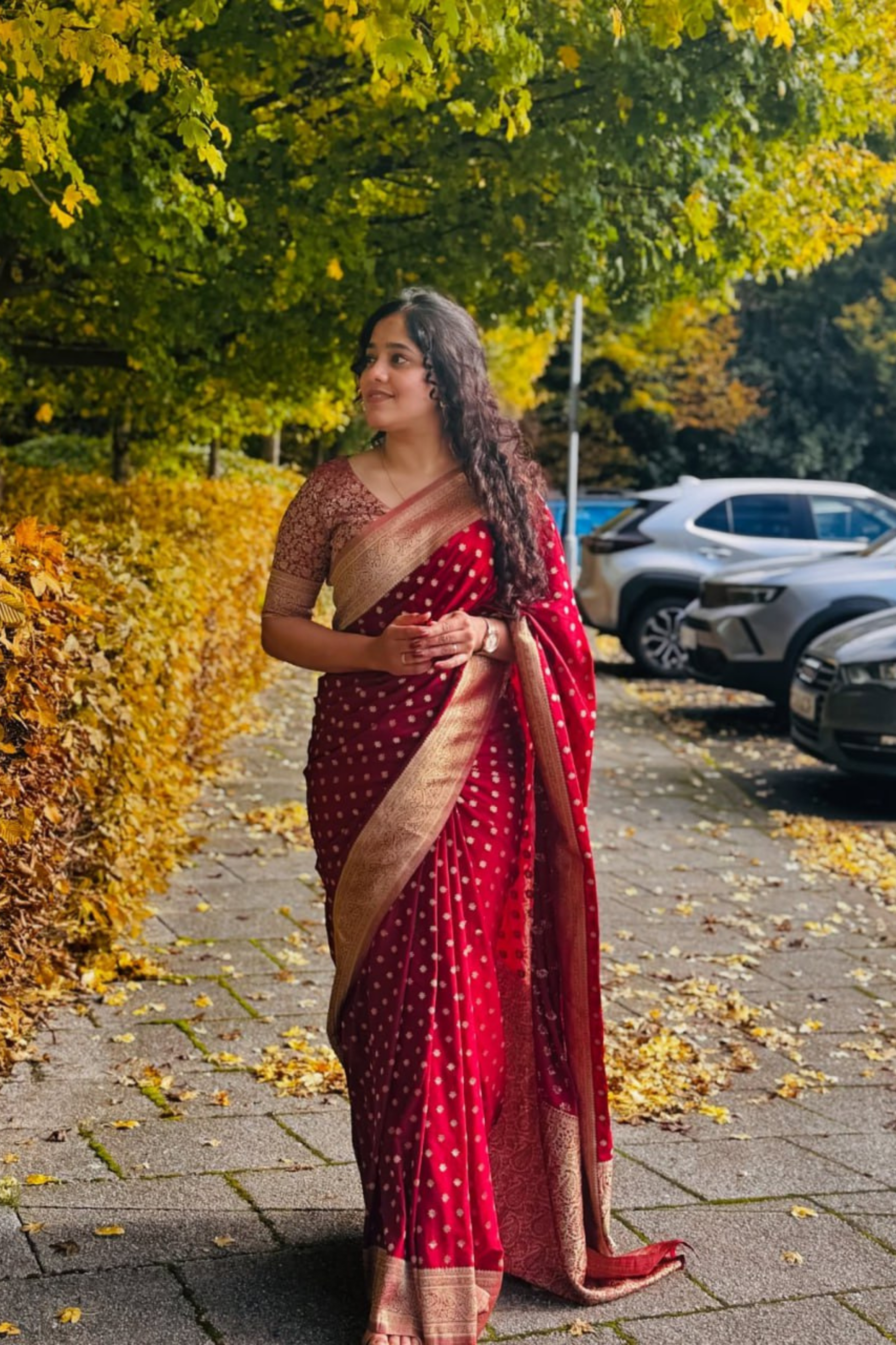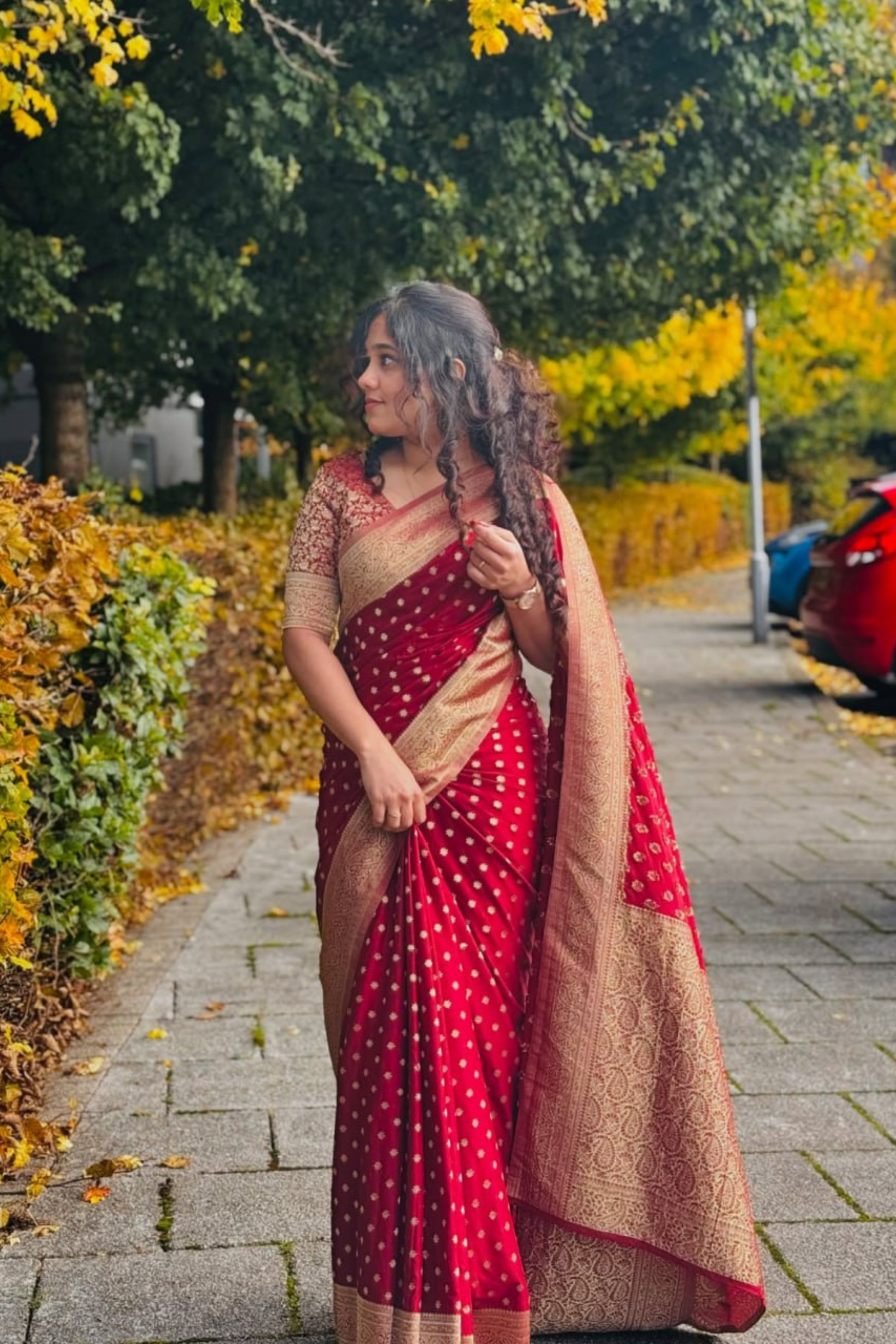 A blend of tradition and luxury, this saree is a wardrobe essential for those who cherish elegance.