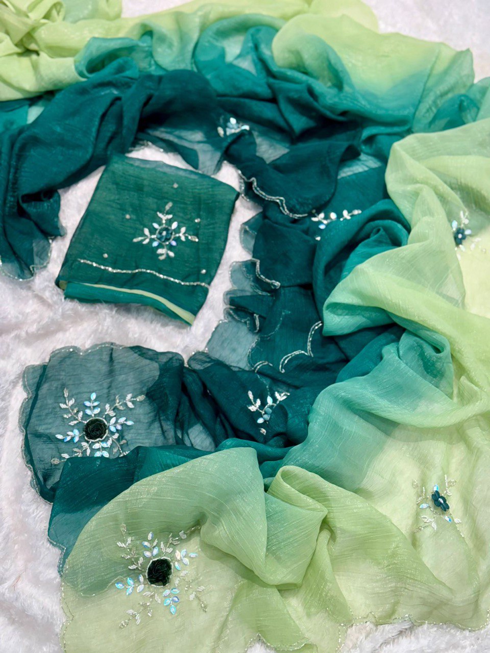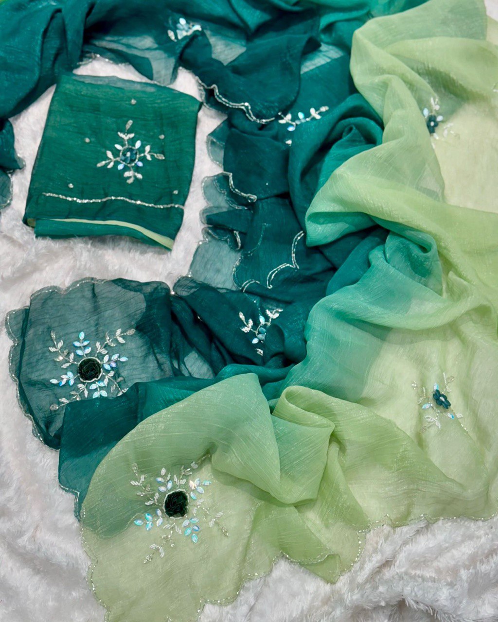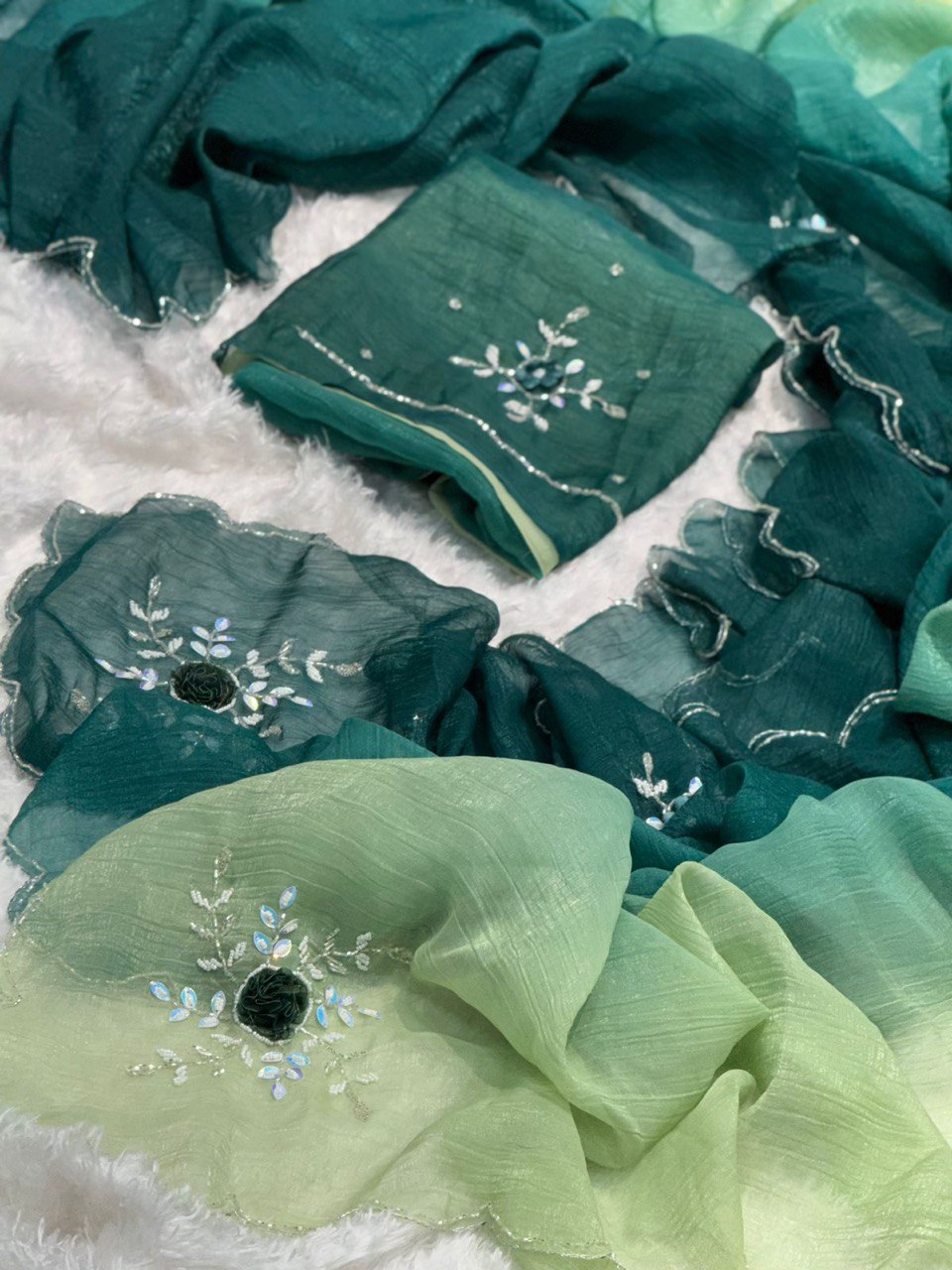 - Detailing: handcrafted saree with fancy work
