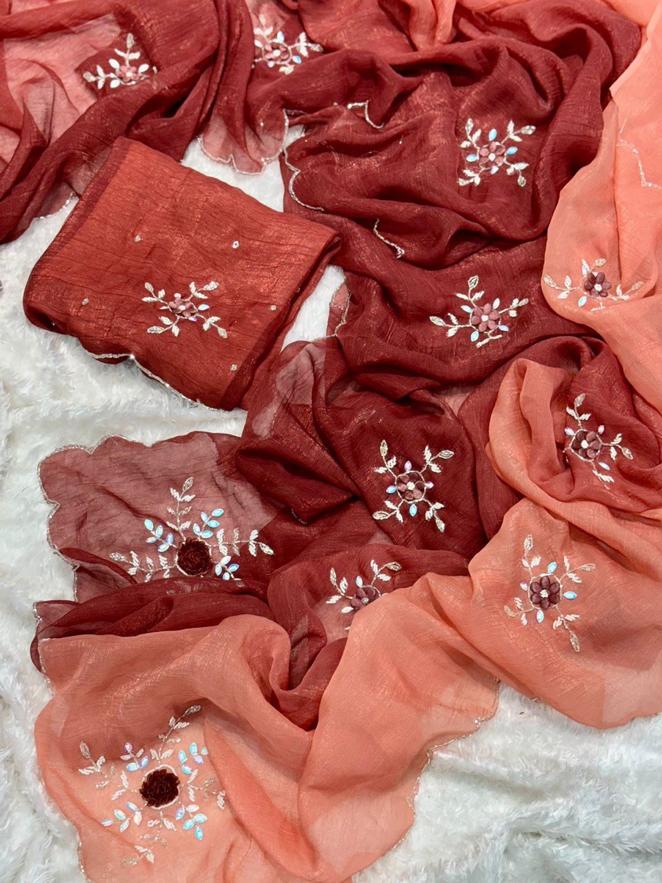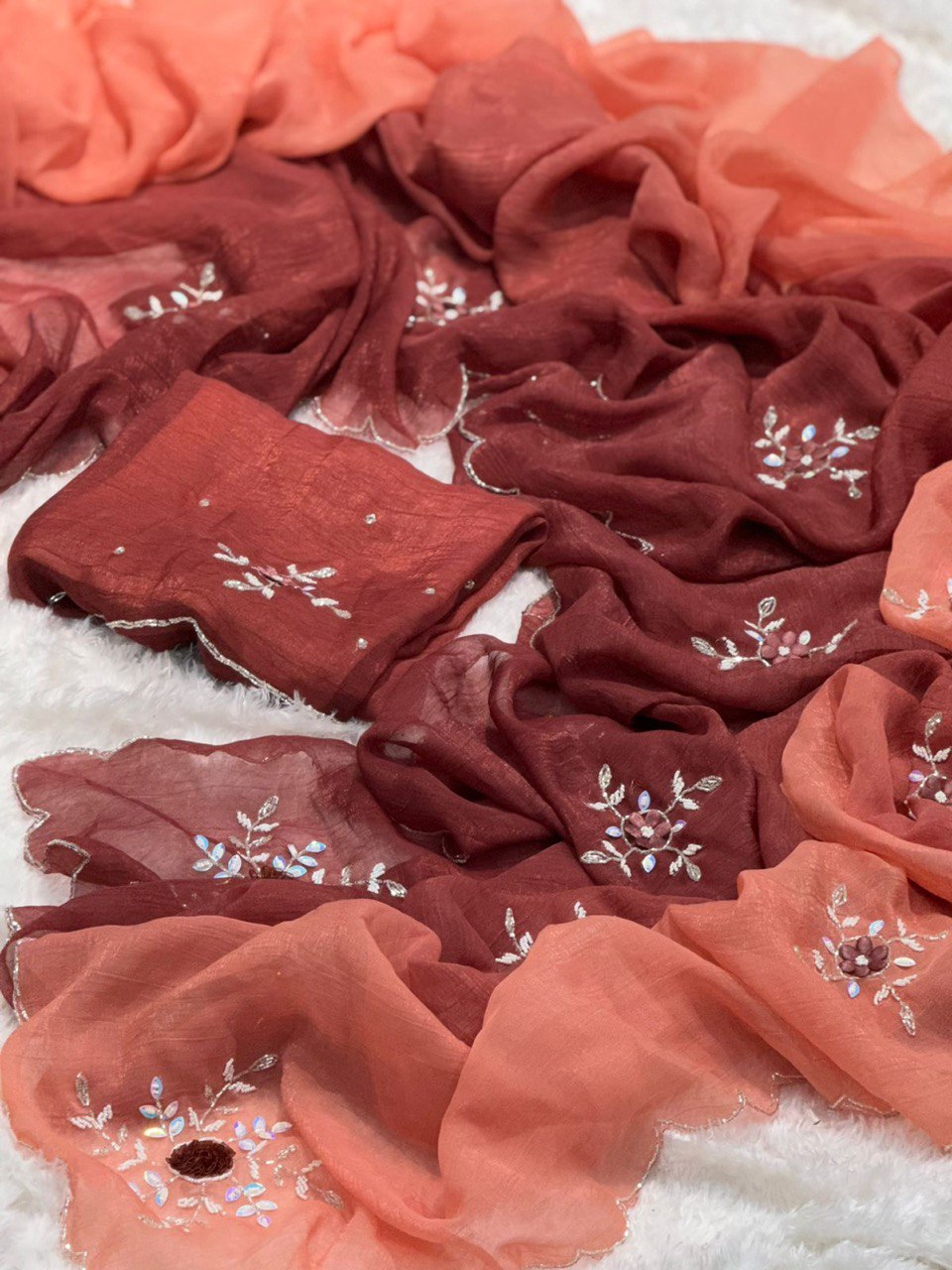 Dhara Handcrafted Soft Tissue Designer Saree With Handwork Blouse