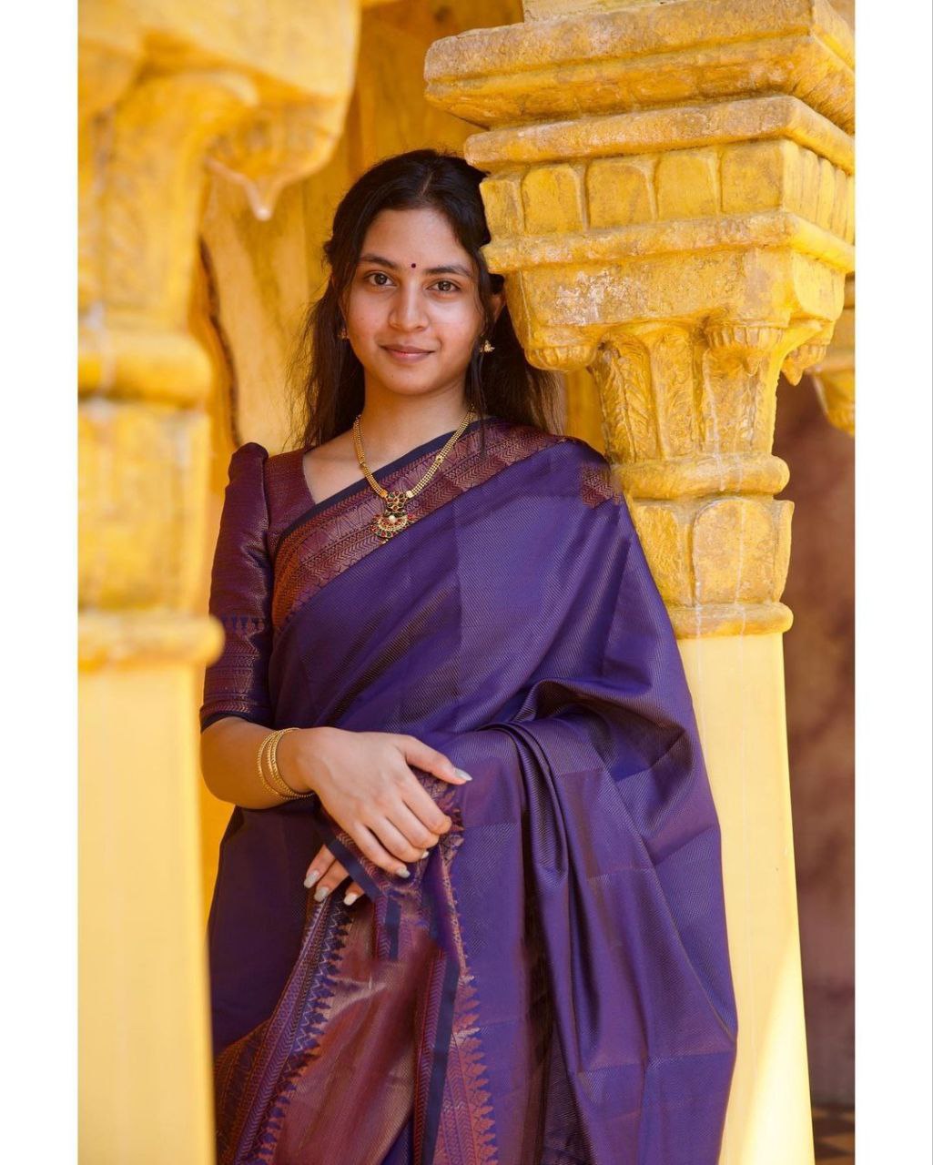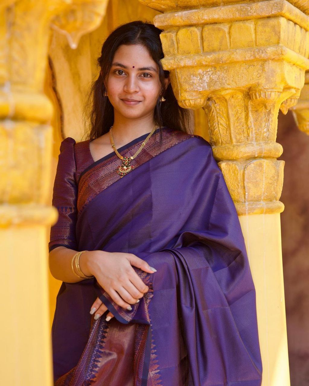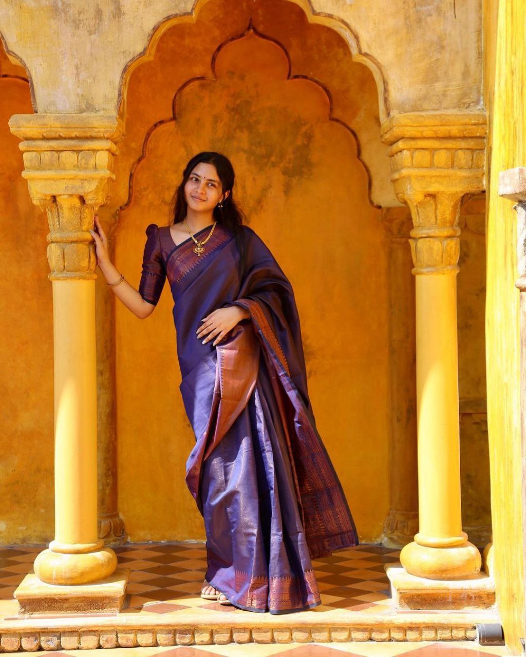 Bring home an aura of sophistication with this Sparkle Blue Soft Silk Saree, gracefully woven with delicate jacquard detailing. The smooth drape and serene shimmer of the fabric beautifully enhance its appeal, making it a perfect choice for celebrations, cultural events, or formal gatherings. Crafted for comfort and timeless charm, this saree is a true wardrobe treasure.