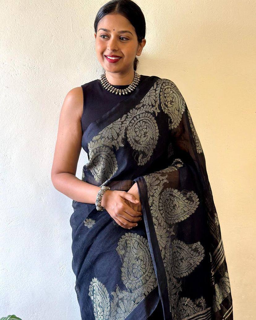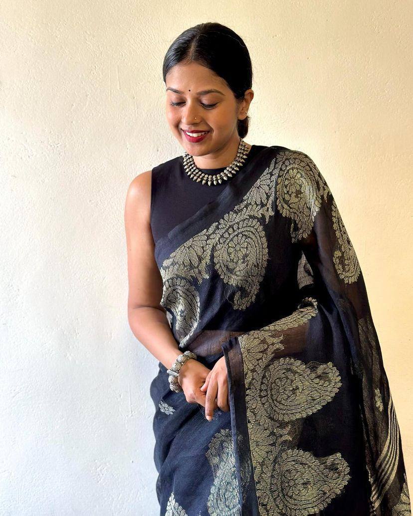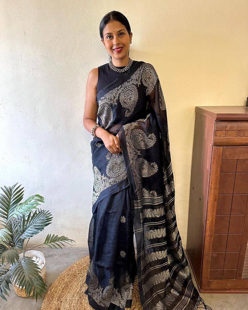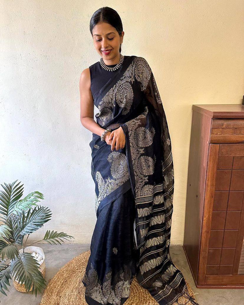 Ebon Elegance Cotton Silk Saree With Fabulouse Blouse Piece