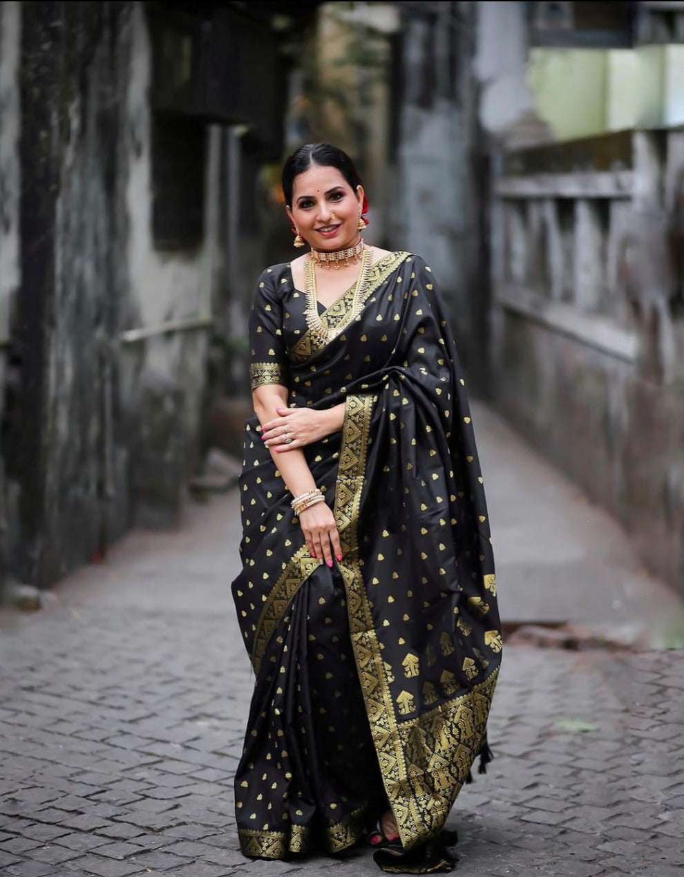 - Gold Black Coloured Banarasi Silk Saree