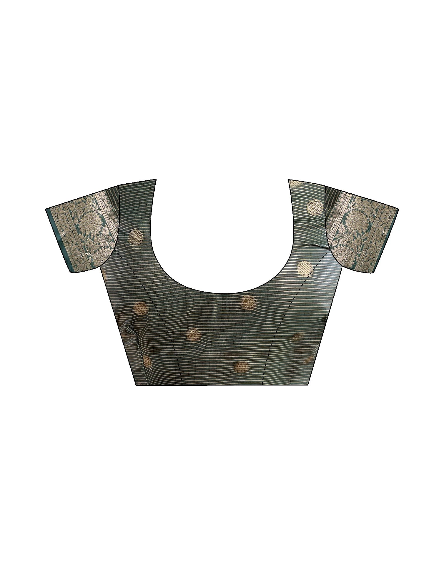 Blouse: Comes with a matching blouse featuring a contrast jacquard border for a complete traditional look.
