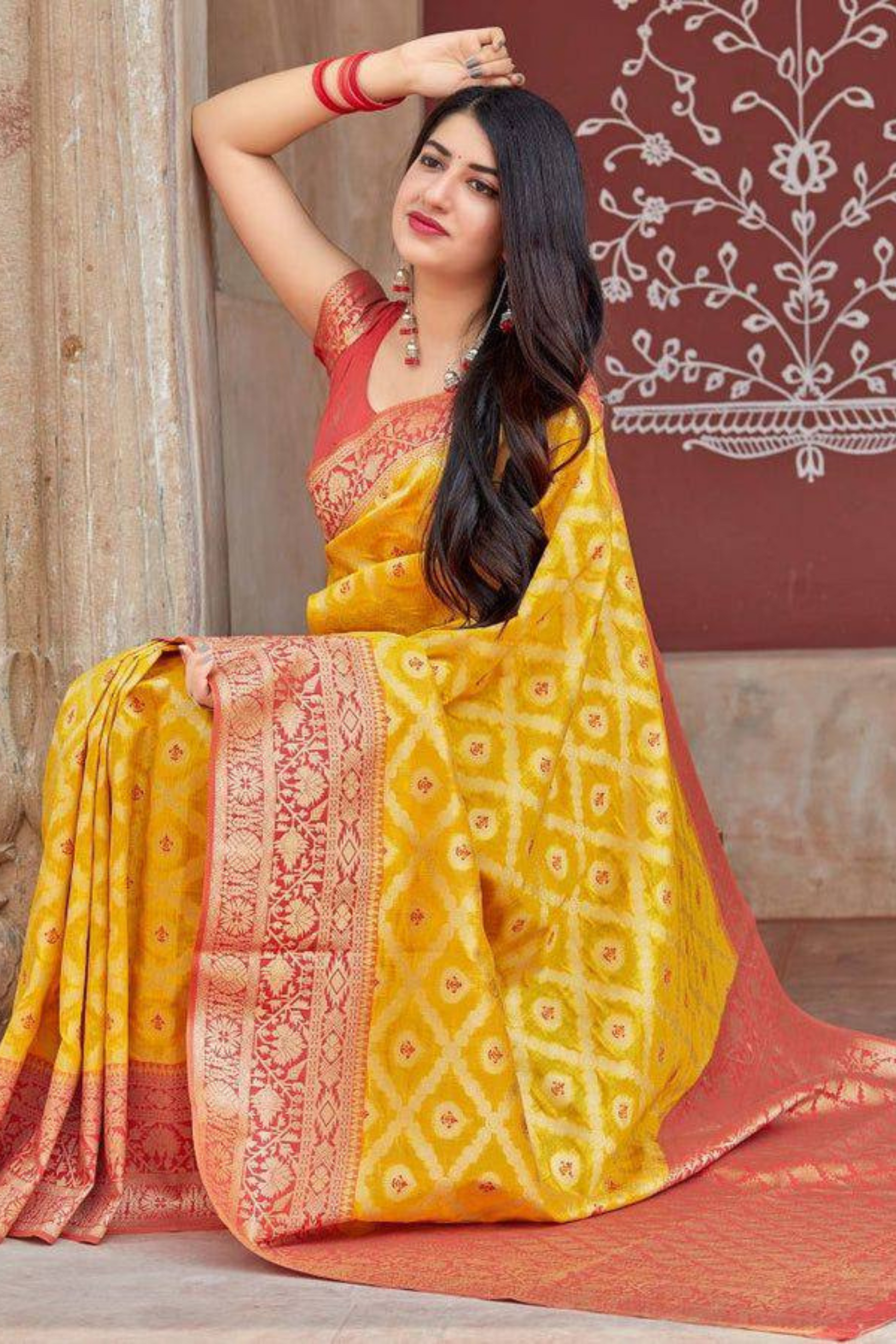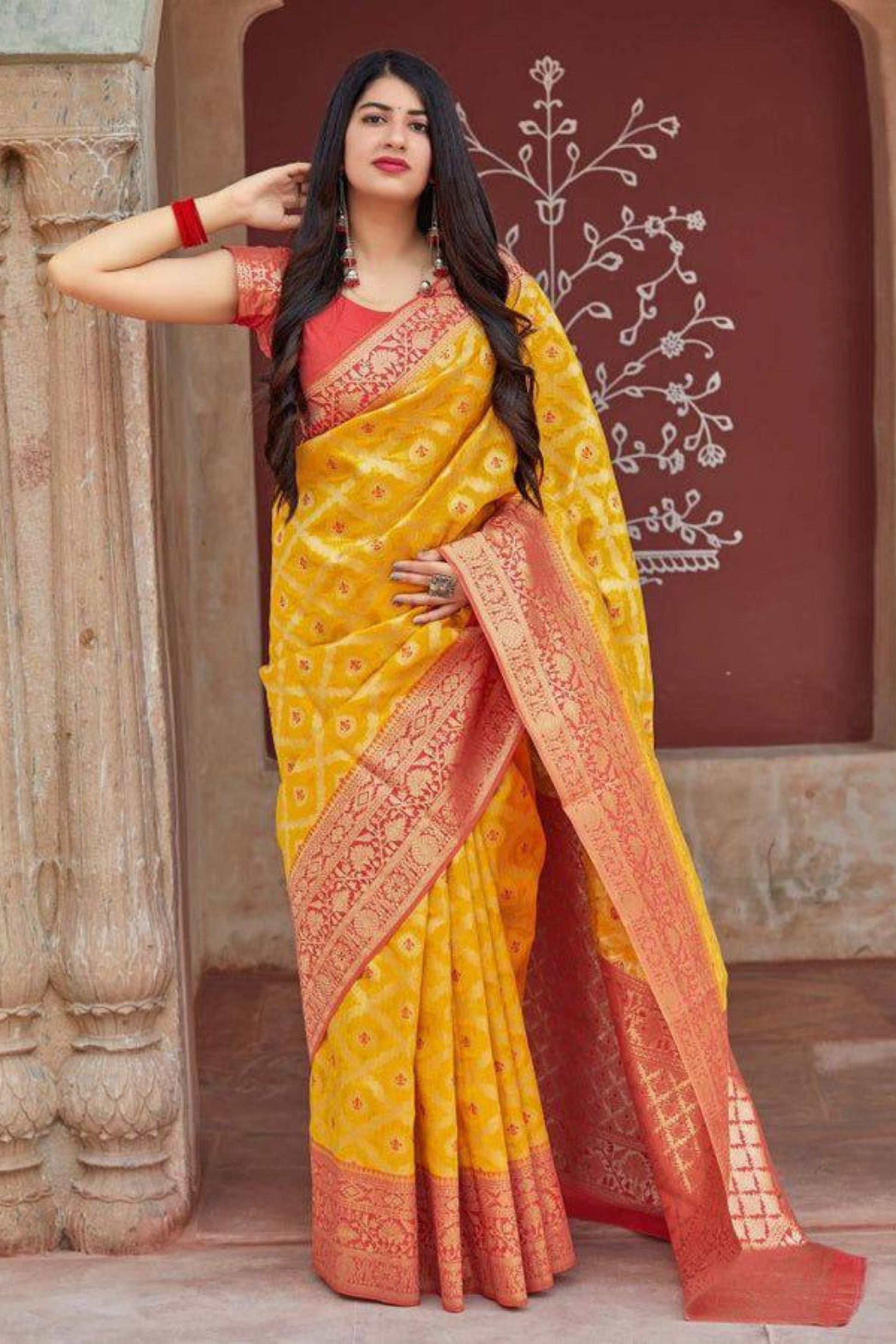 A saree that radiates charm and tradition, adding a touch of brightness to every occasion.
