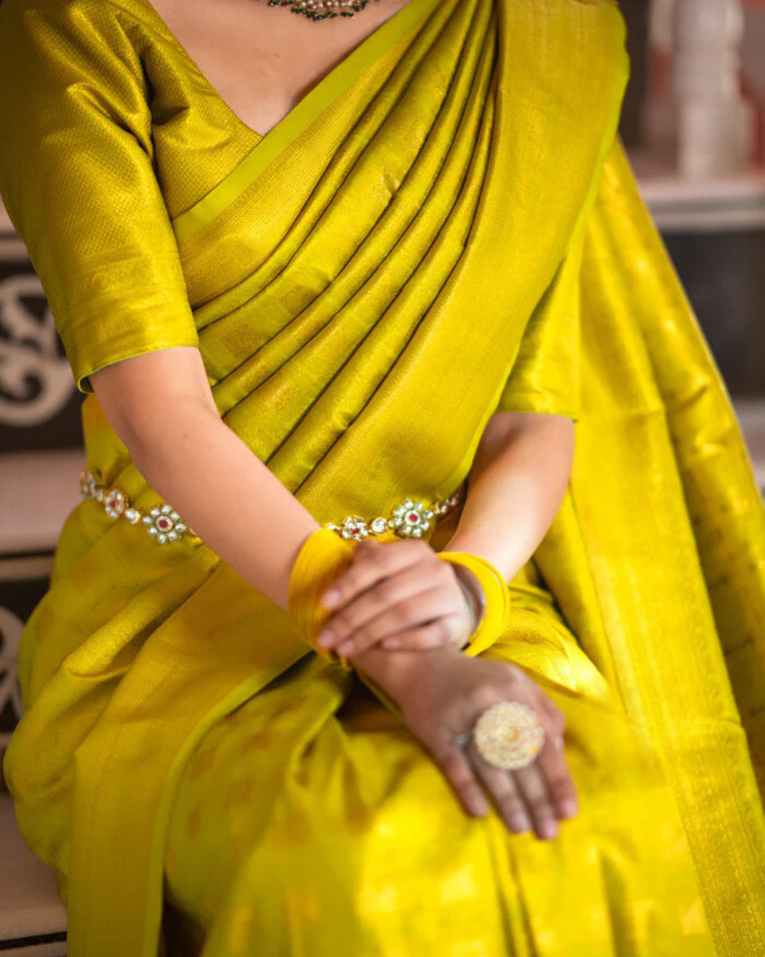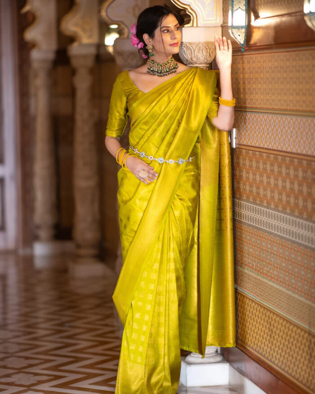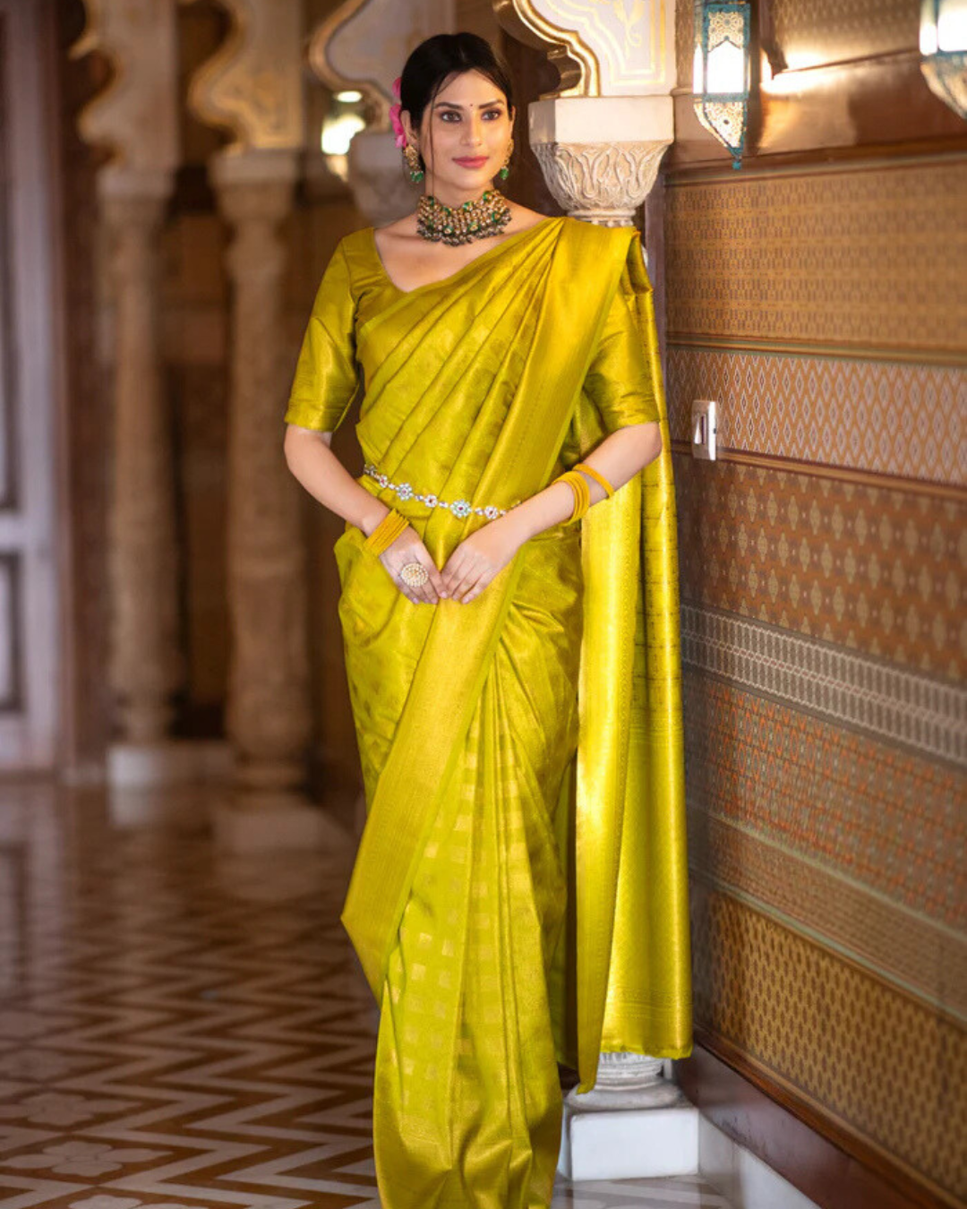 - Design: Intricate zari detailing with a classic border