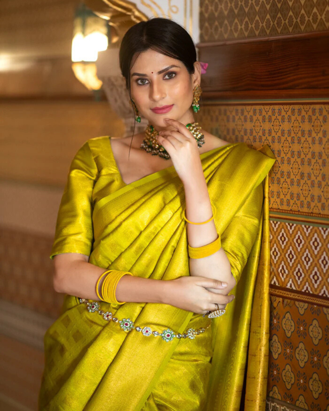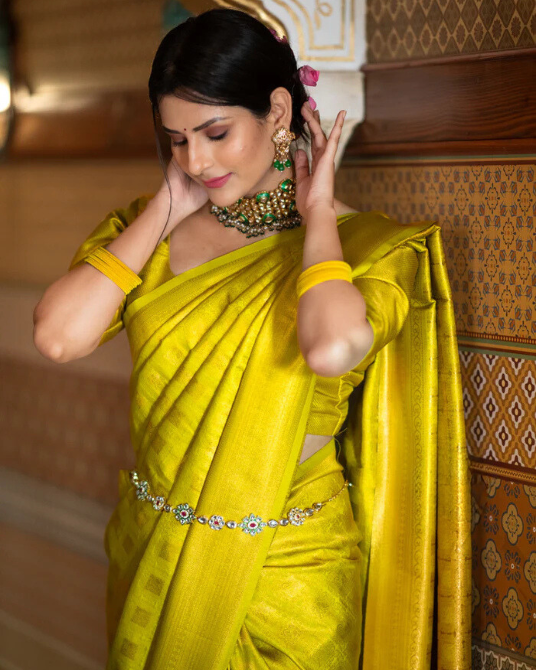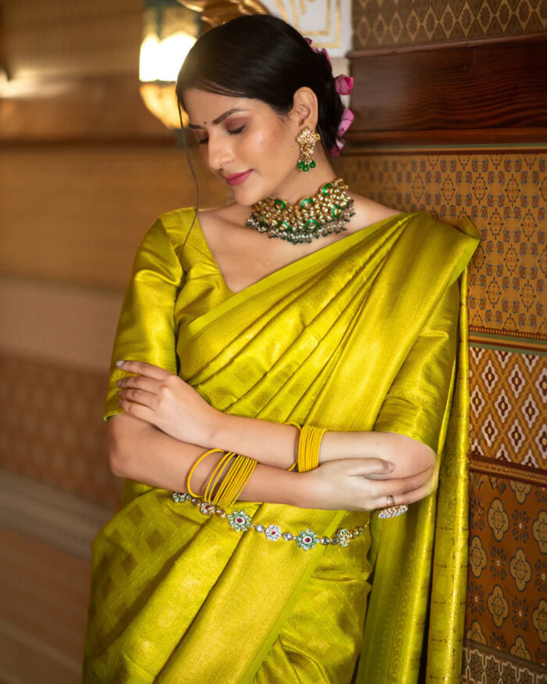 - Design: Intricate zari detailing with a classic border
