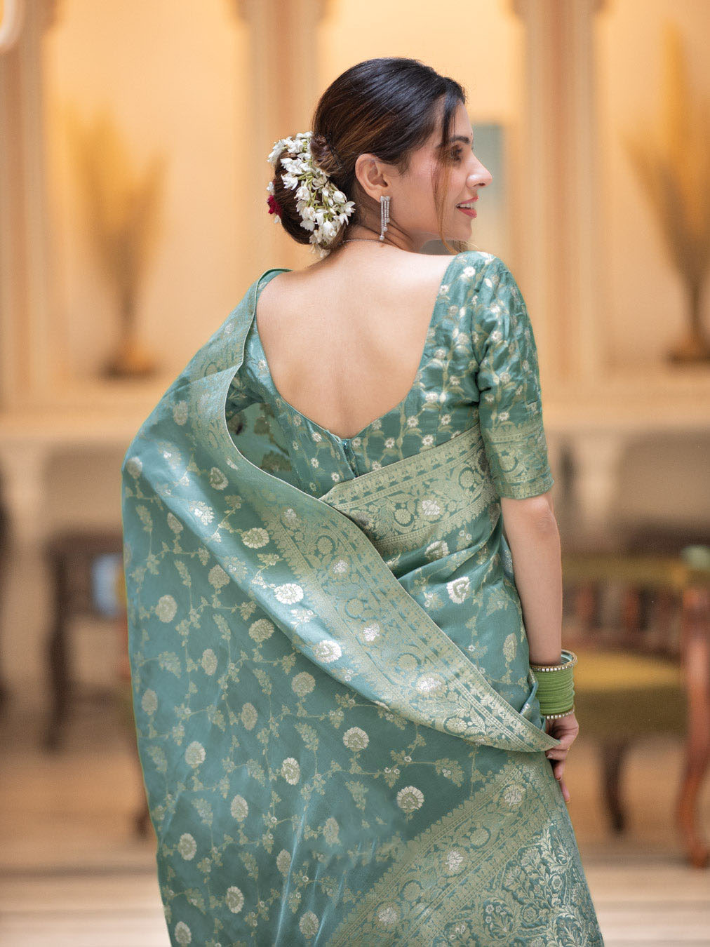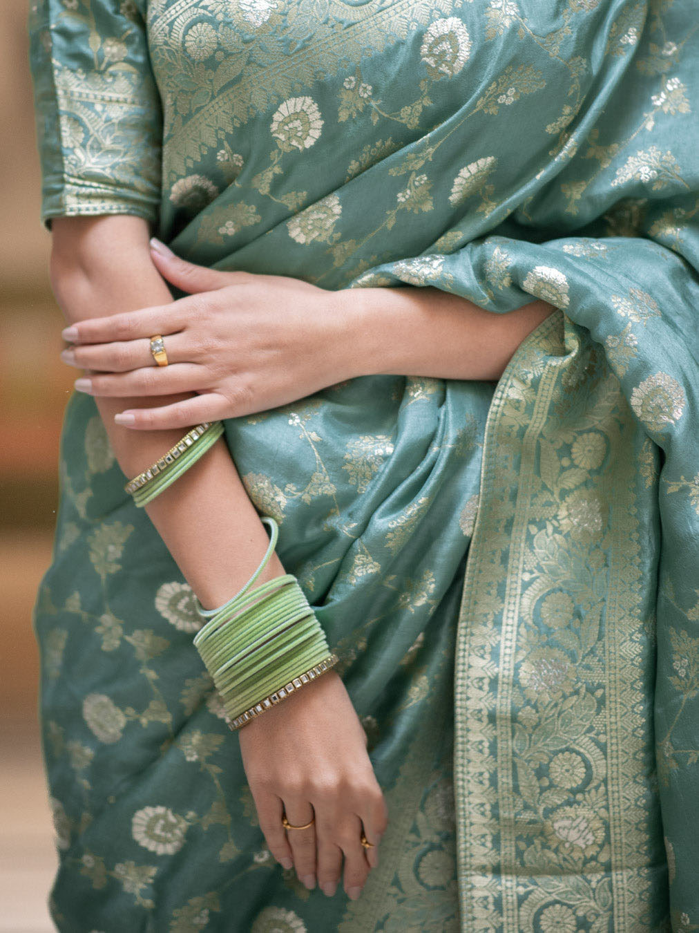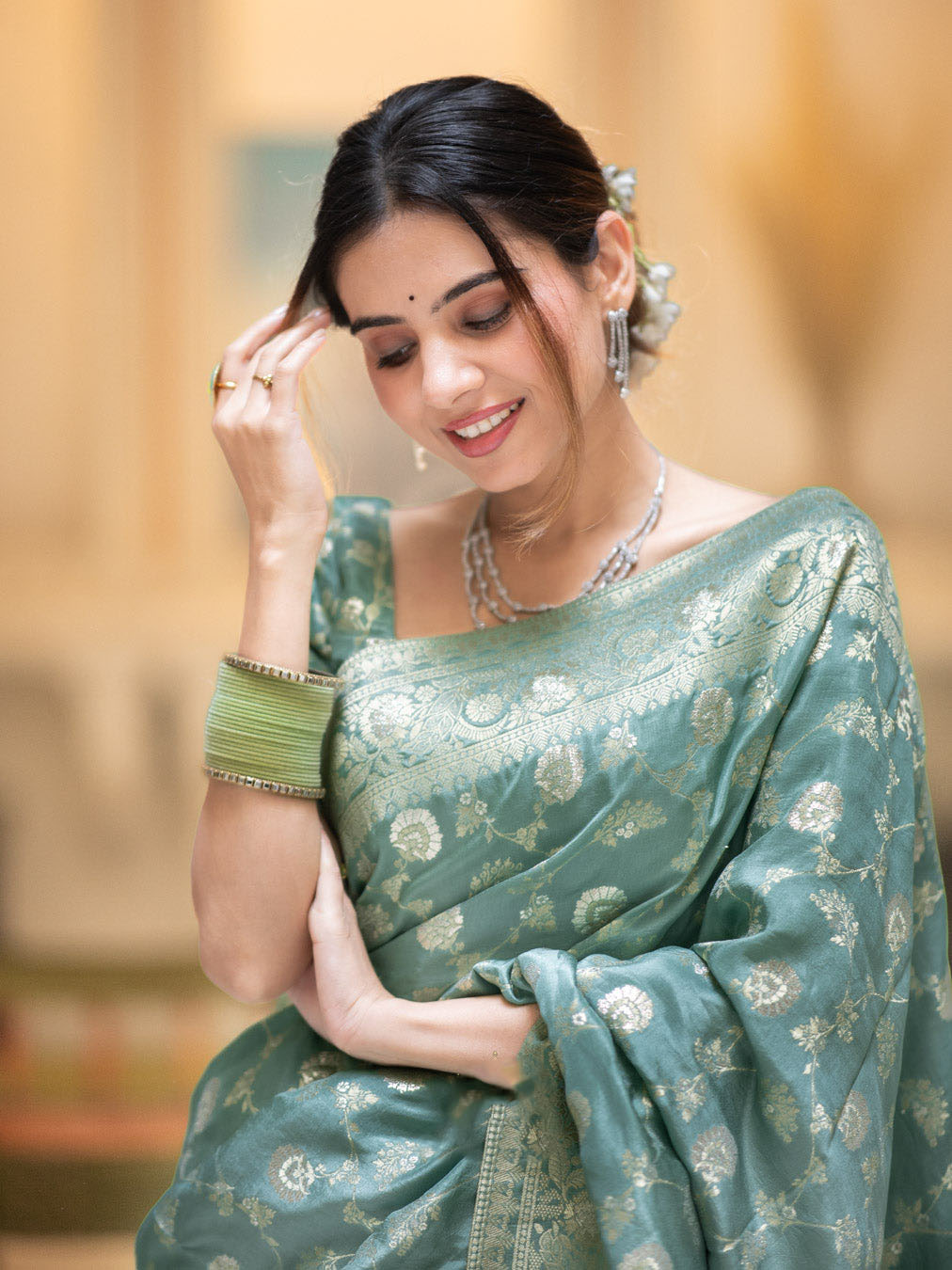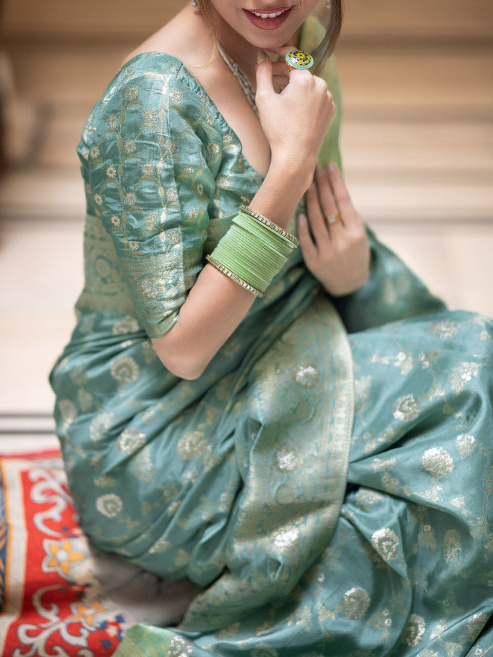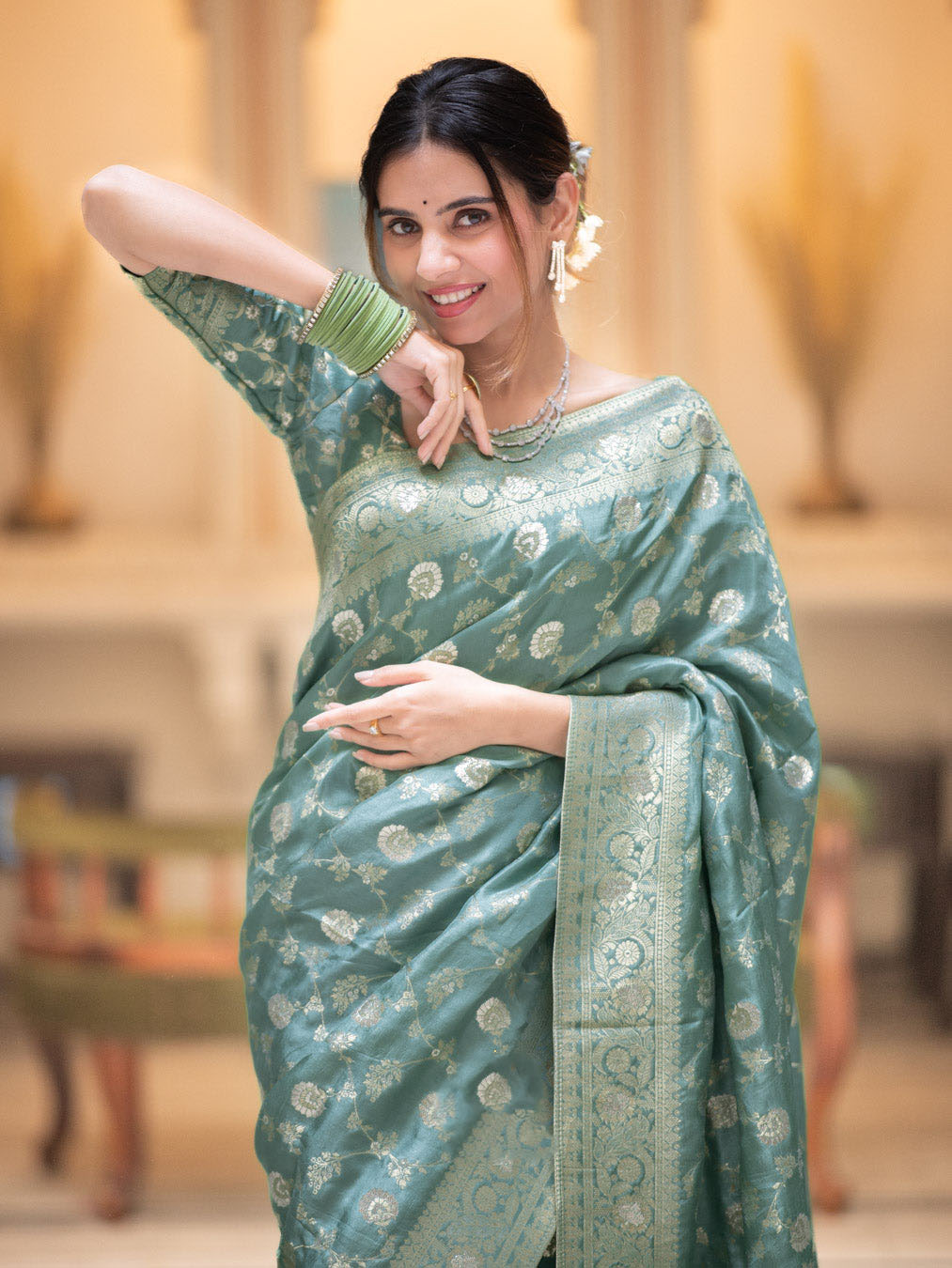 Hira C- Green Banarasi Silk Saree With Amazing Blouse Piece