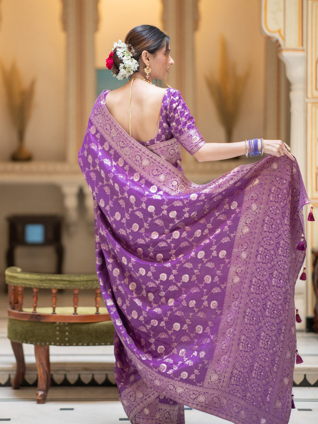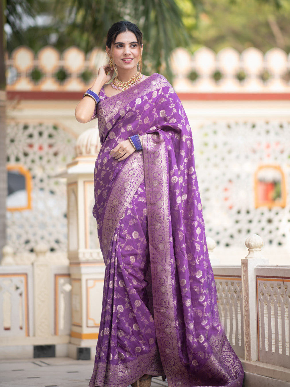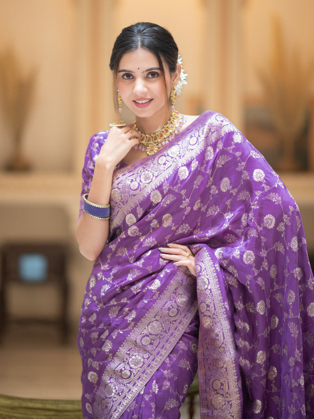 Hira Rich Purple Banarasi Silk Saree With Amazing Blouse Piece