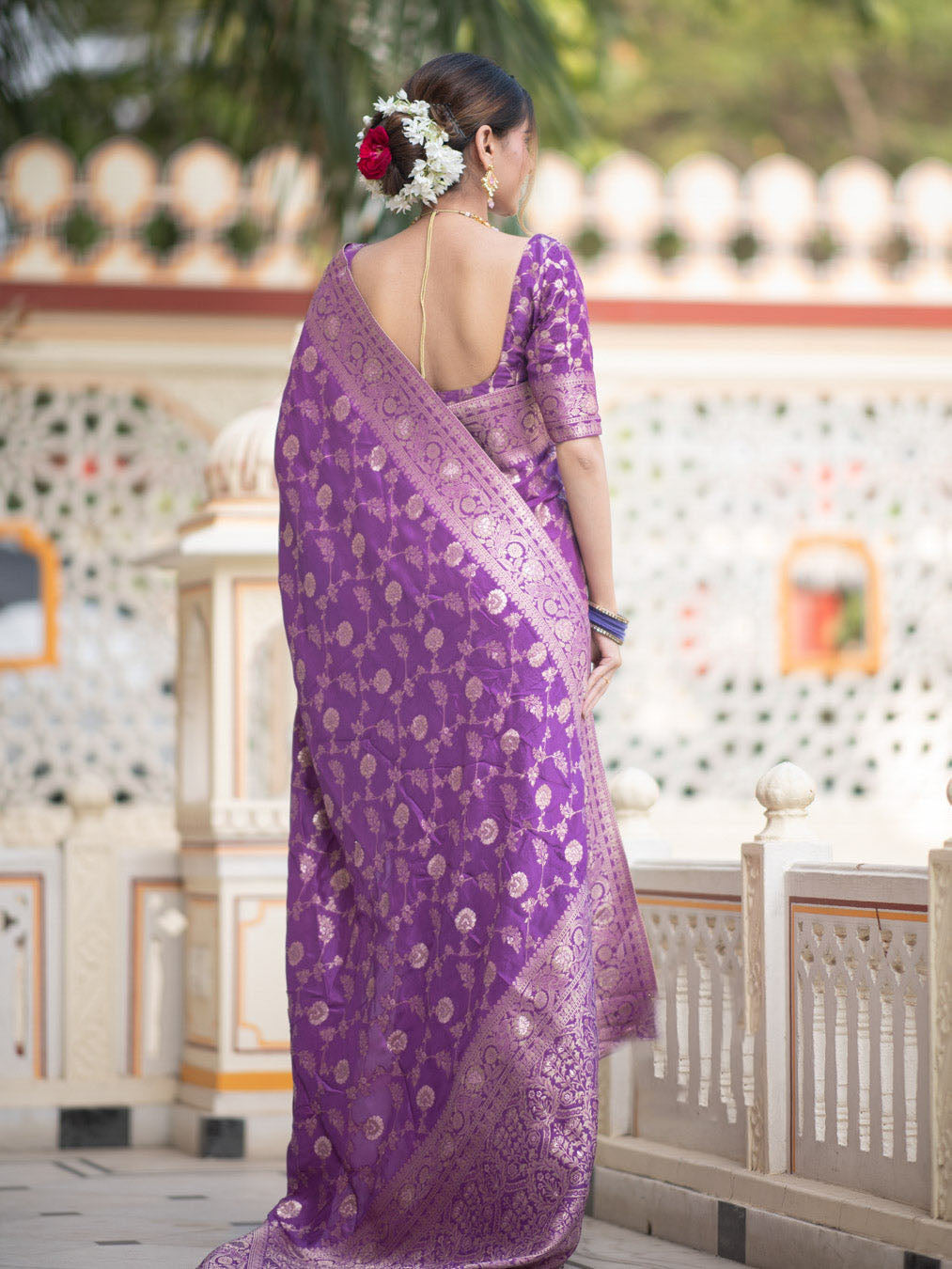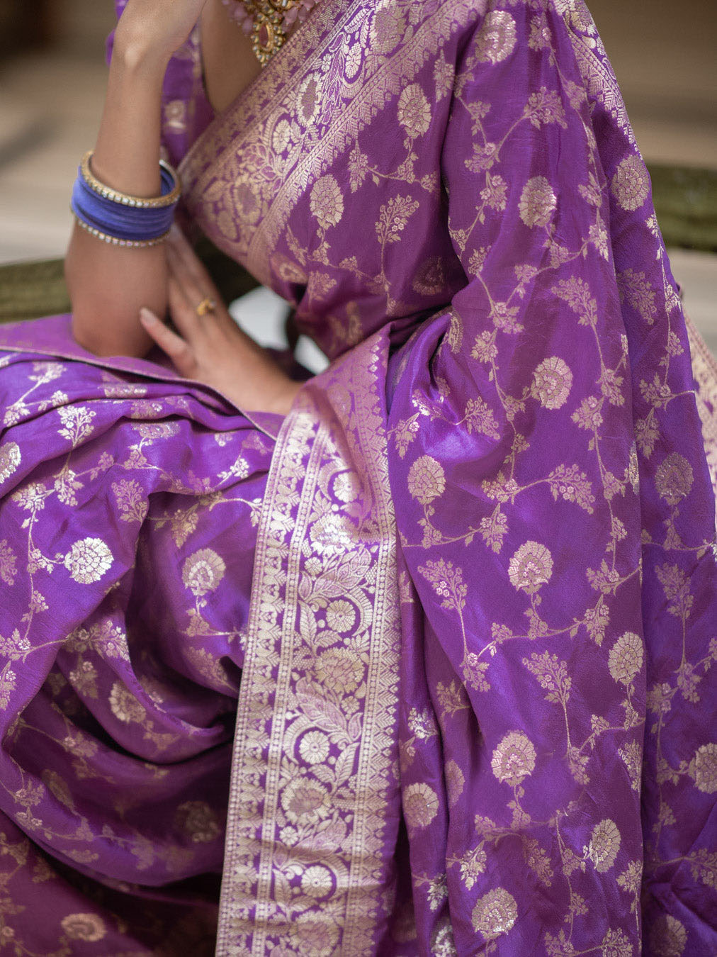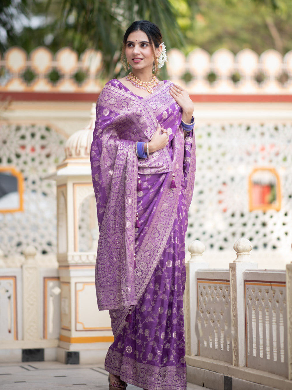 Hira Rich Purple Banarasi Silk Saree With Amazing Blouse Piece