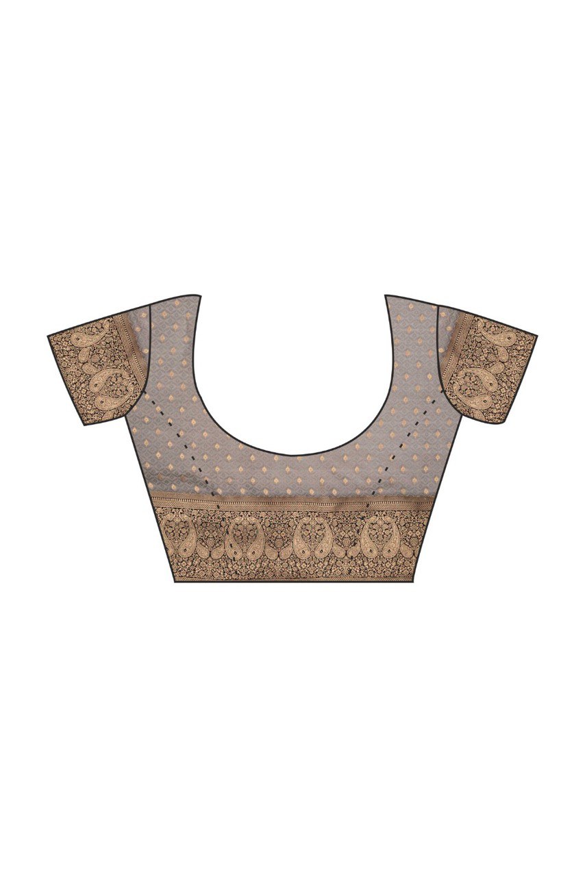 Ibarshani Grey Banarasi Silk Saree With Attractive Blouse Piece Attached