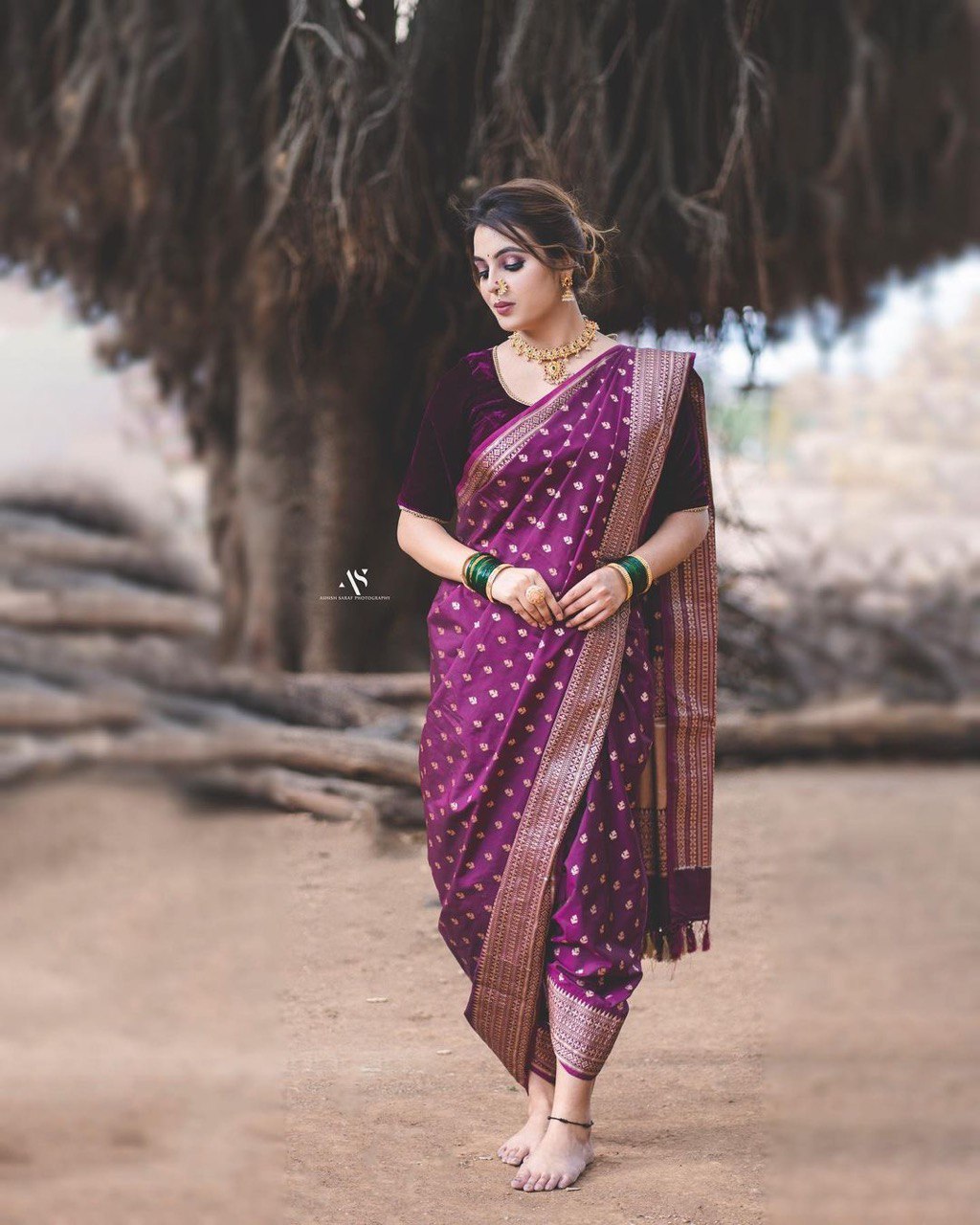 Ibarshani Wine Soft Silk Saree With Attractive Blouse Piece Attached