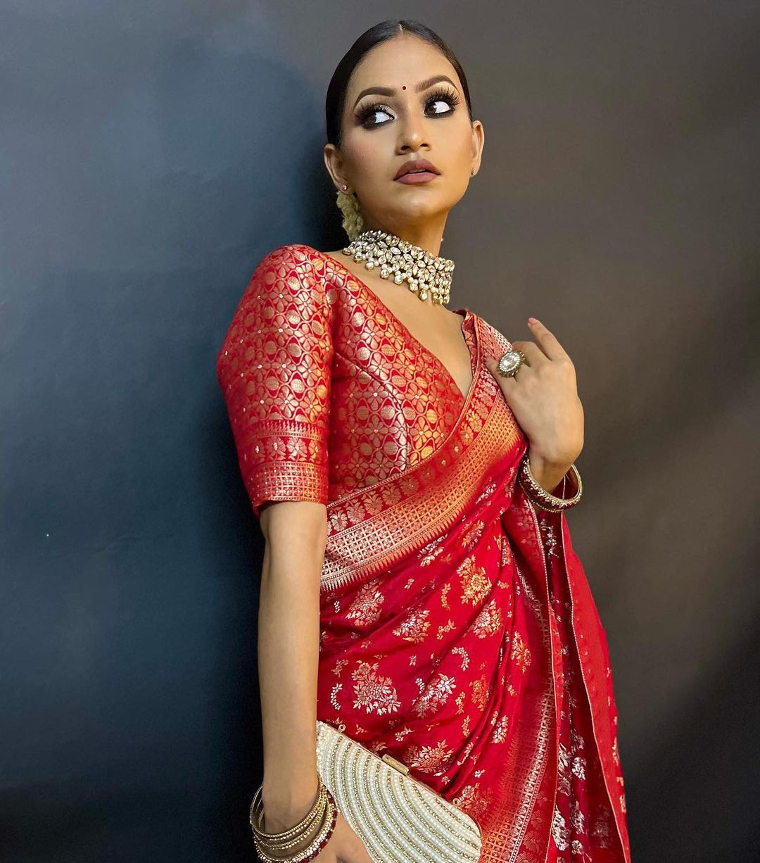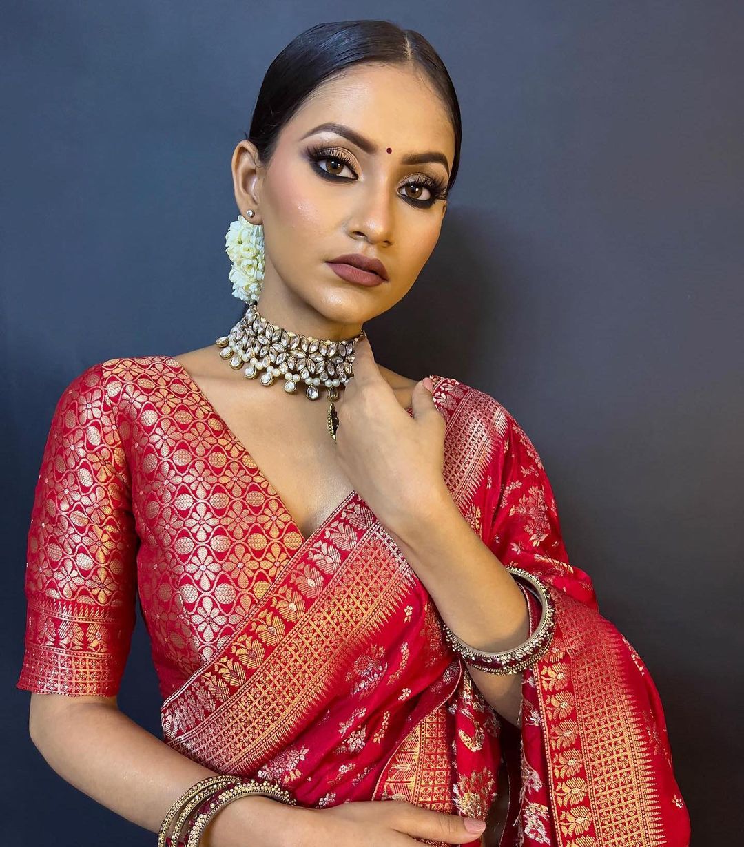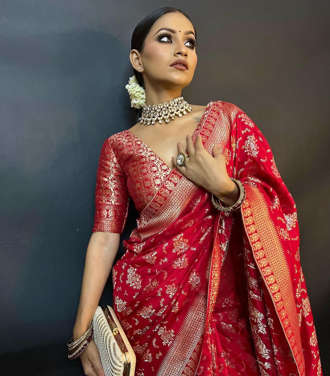 Jamsa Red2 Banarasi Silk Saree With Attractive Blouse Piece