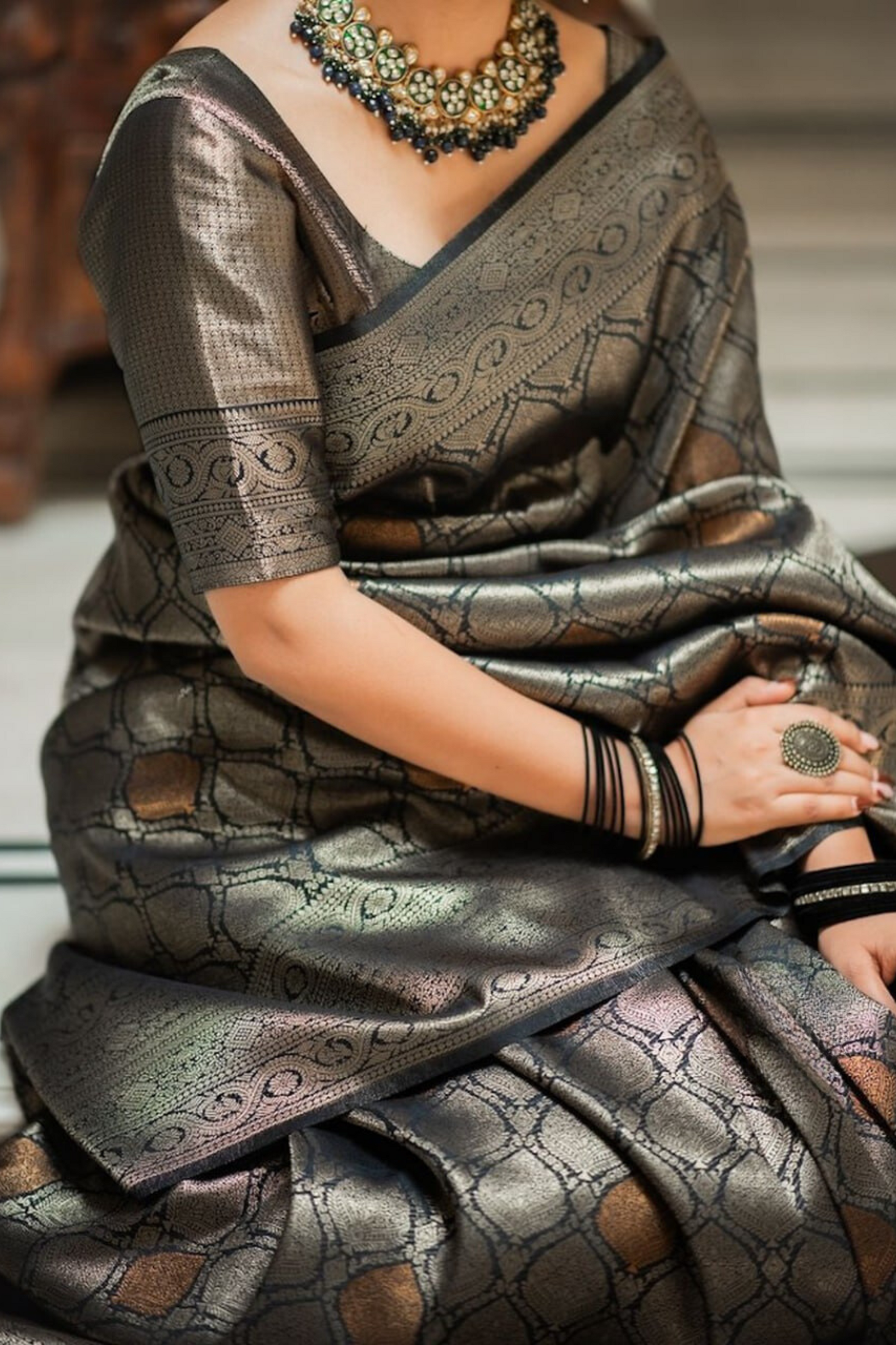 Drape yourself in timeless luxury with the "Opulent Ebony" saree, perfect for creating unforgettable memories.
