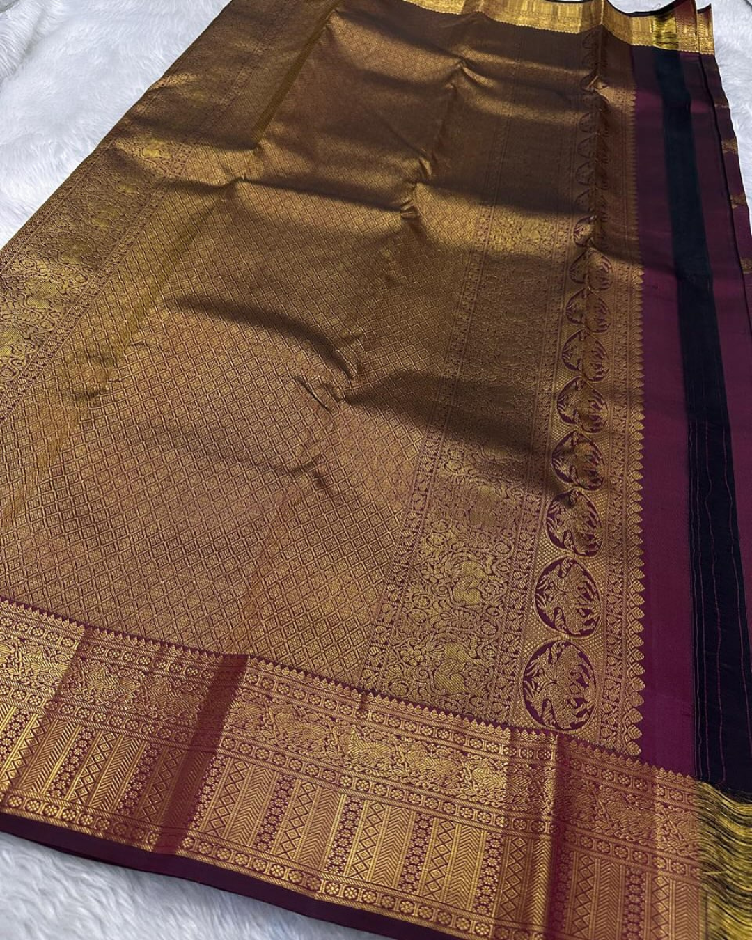 Kavya - Wine Purple Kanjivaram Saree with Zari Motifs